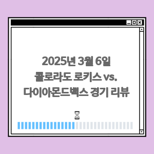 야구 팬 2025년 3월 6일 콜로라도 로키스와 다이아몬드백스의 경기가 어떠했는지 궁금하지 않으신가요? 이번 경기는 두 팀의 치열한 경쟁과 극적인 반전으로 가득했던 것 같습니다. 과연 어떤 일이 있었던 걸까요?